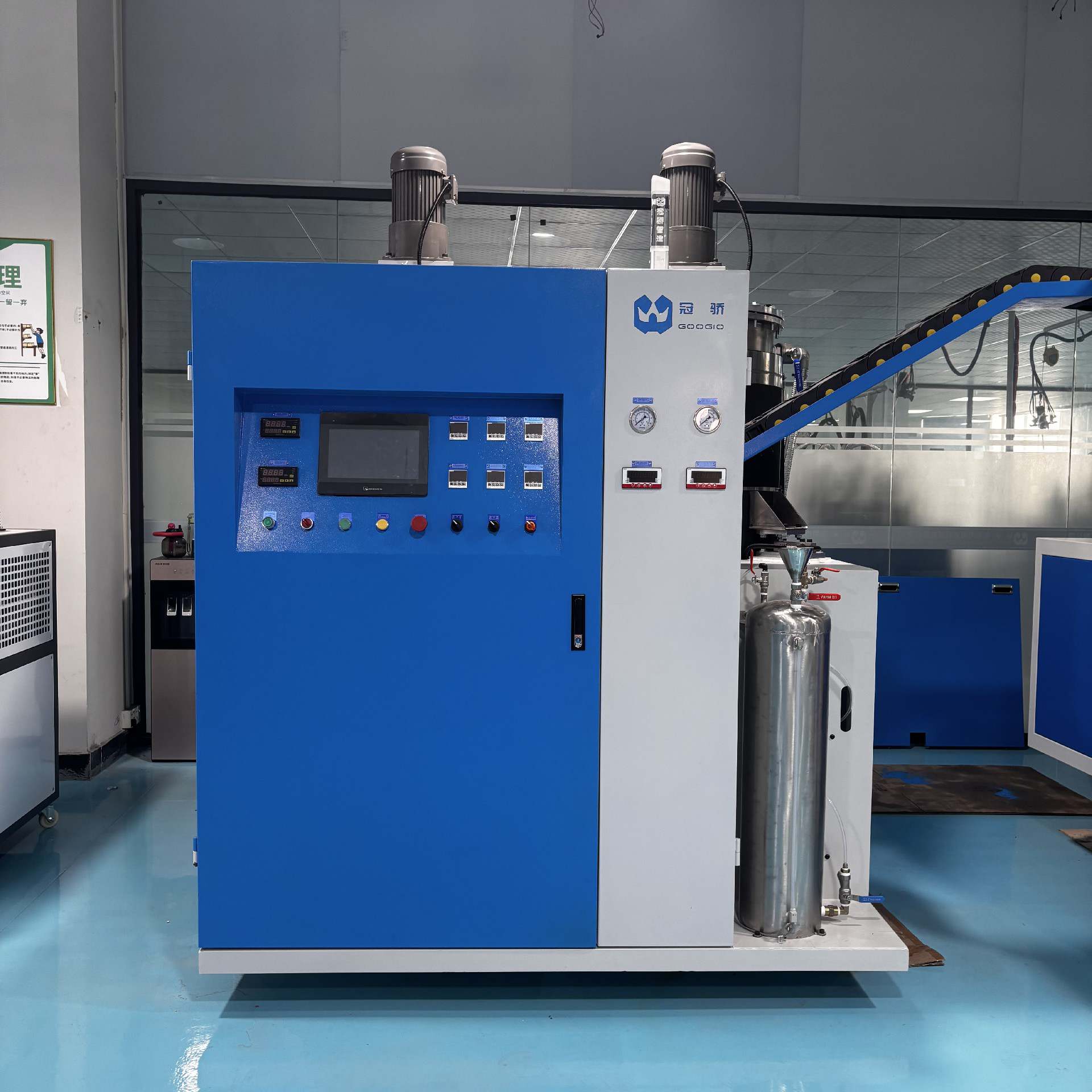 The Medical-Grade Hydrophilic PU Foam Dosing System provides automated precision dosing, proportioning, and dynamic mixing of polyurethane prepolymers with aqueous agents for medical-grade wound dressing production, featuring PLC-controlled operation with an intuitive HMI touchscreen. This integrated system incorporates dual-zone PID thermal control (±2°C) for prepolymer heating and aqueous agent chilling, servo-driven metering pumps achieving ±1% gravimetric accuracy, and continuous-flow dynamic variable-speed shear mixing technology with auto-recirculation to ensure material homogeneity. All wetted parts conform to medical-grade standards, which guarantees continuous sterile production for advanced wound care applications.